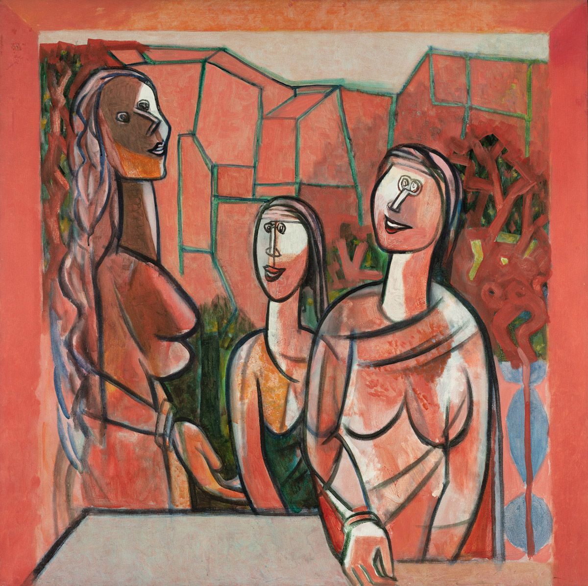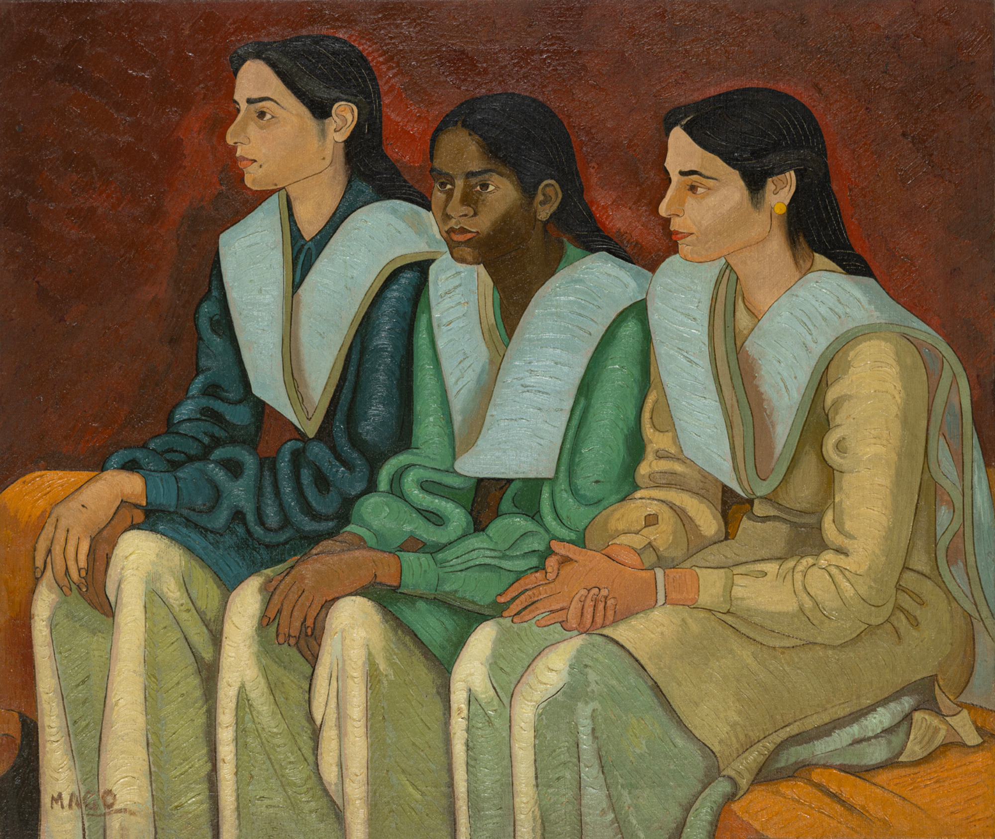 P. N. Mago, The Three Sisters, 1948, Oil on canvas 30.2 x 35.0 in. Collection: DAG