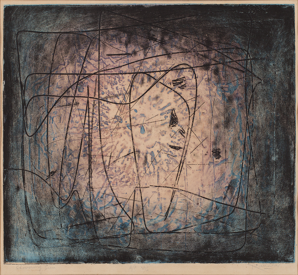 Kanwal Krishna, Shivering Sun, Aquatint on paper, 12.7 x 14.7 in. Collection: DAG