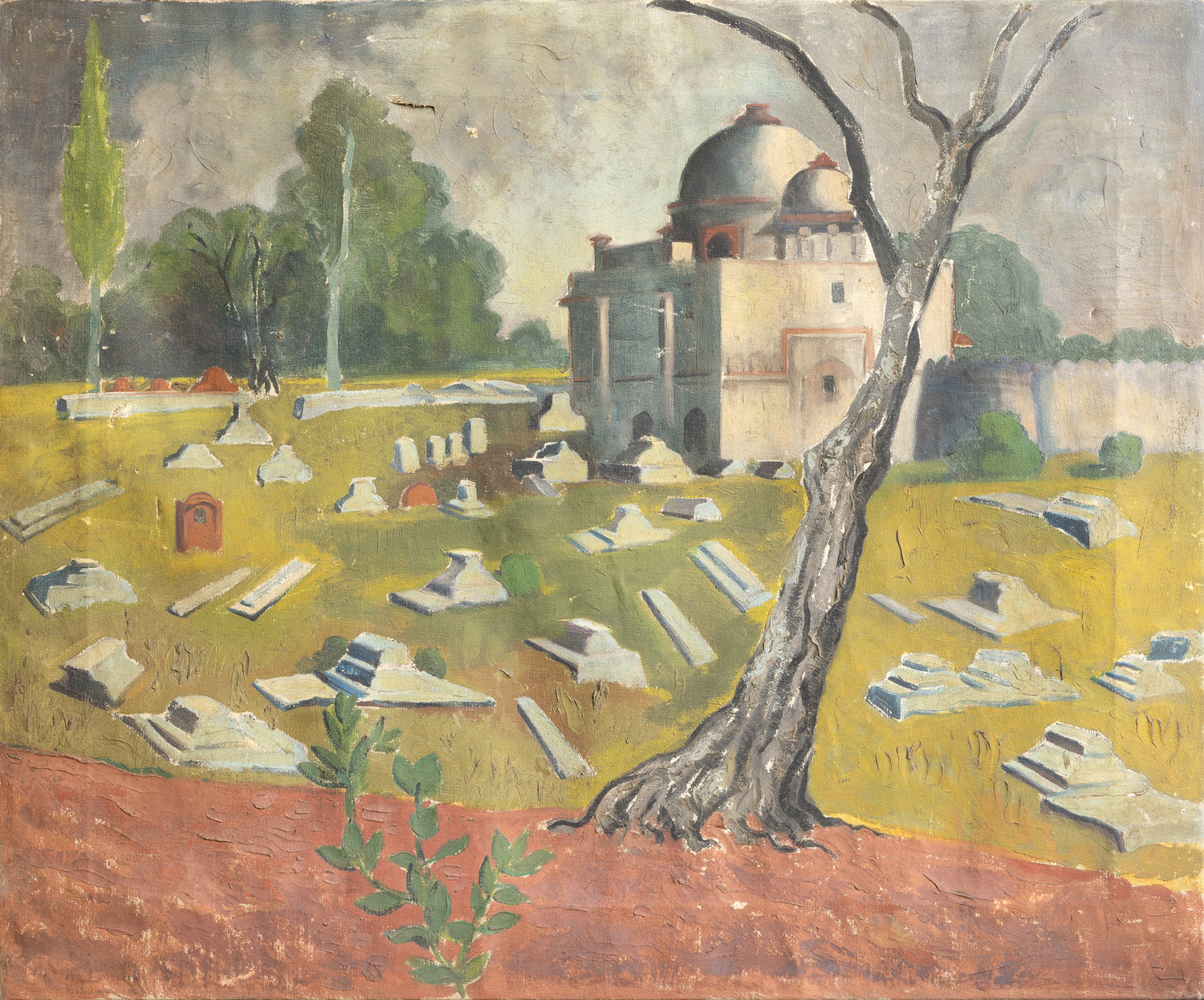B. C. Sanyal, Untitled (Nizamuddin Burial Ground), early 1950s, Oil on canvas, 21.0 x 26.2 in. Collection: DAG