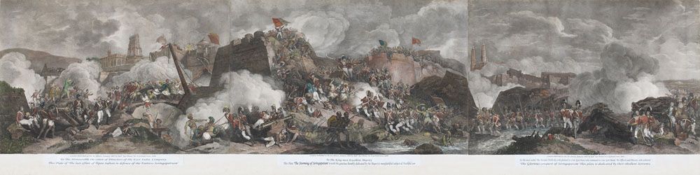 The Last Effort of Tippoo Sultaun in Defence of the Fortress of Seringapatam - The Storming of Seringapatam - The Glorious Conquest of Seringapatam (triptych) 1802-03