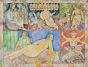 Indra Dugar grew up in the aesthetic ambience of Kala Bhavana but did not receive any formal training in art. He focused on close observations of nature and developed a language for landscapes, which was very different from Bengal School’s visual vocabulary. This painting depicts a bridal party’s journey to a temple, far into the distance on top of the hill, though the entire foreground is overwhelmed by natural features. The vermillion palanquin is dwarfed by the immensity of the mountains turning verdant—the exuberance of spring is brought to life by the artist in countless shades of green.