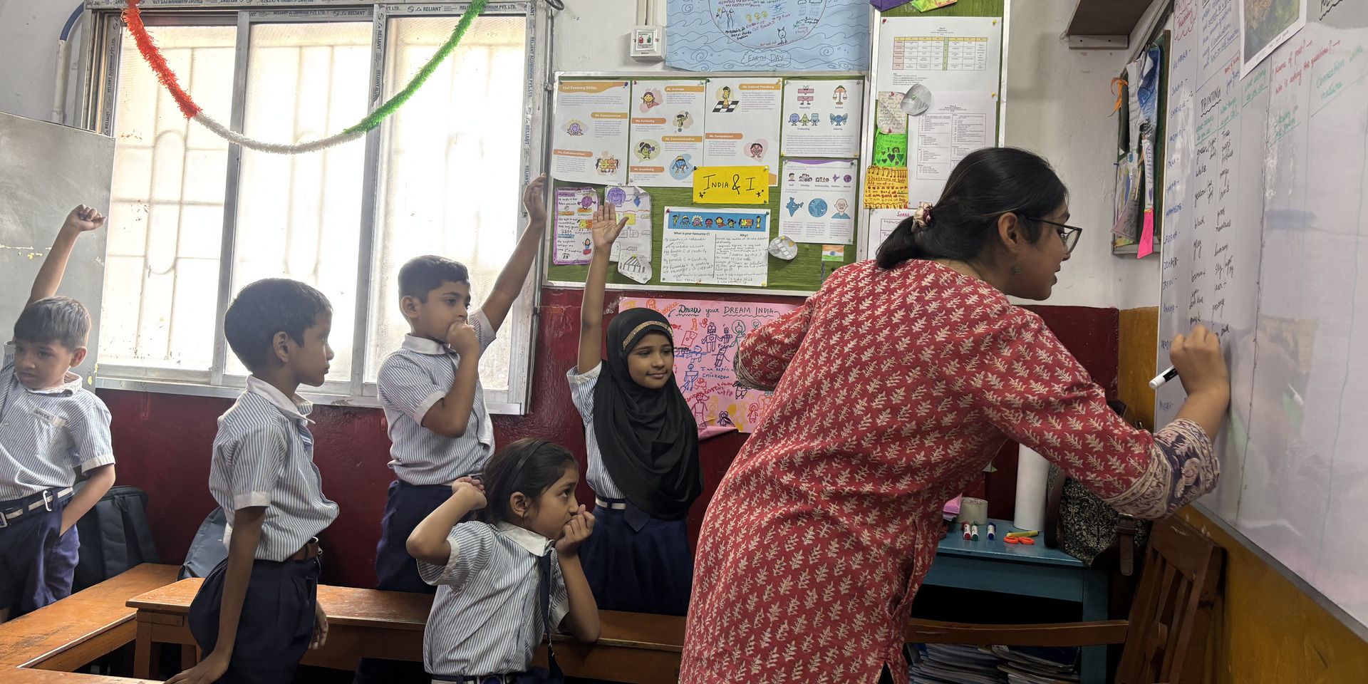 That’s how Ritwika Chattopadhyay, a Teach For India (T.F.I.) Art Track Fellow teaching Grade 6 at Ek Tara, described her experience as part of the second phase of DAG’s collaboration with T.F.I. She has been implementing the art-integrated framework co-developed earlier this year by DAG’s Education Division and T.F.I. fellows from the previous graduating batch. ‘An art-integrated classroom is a space where every child participates and feels that their opinions matter,’ she shared. ‘They can question, challenge, and build on their peers’ ideas, rather than simply listening.’