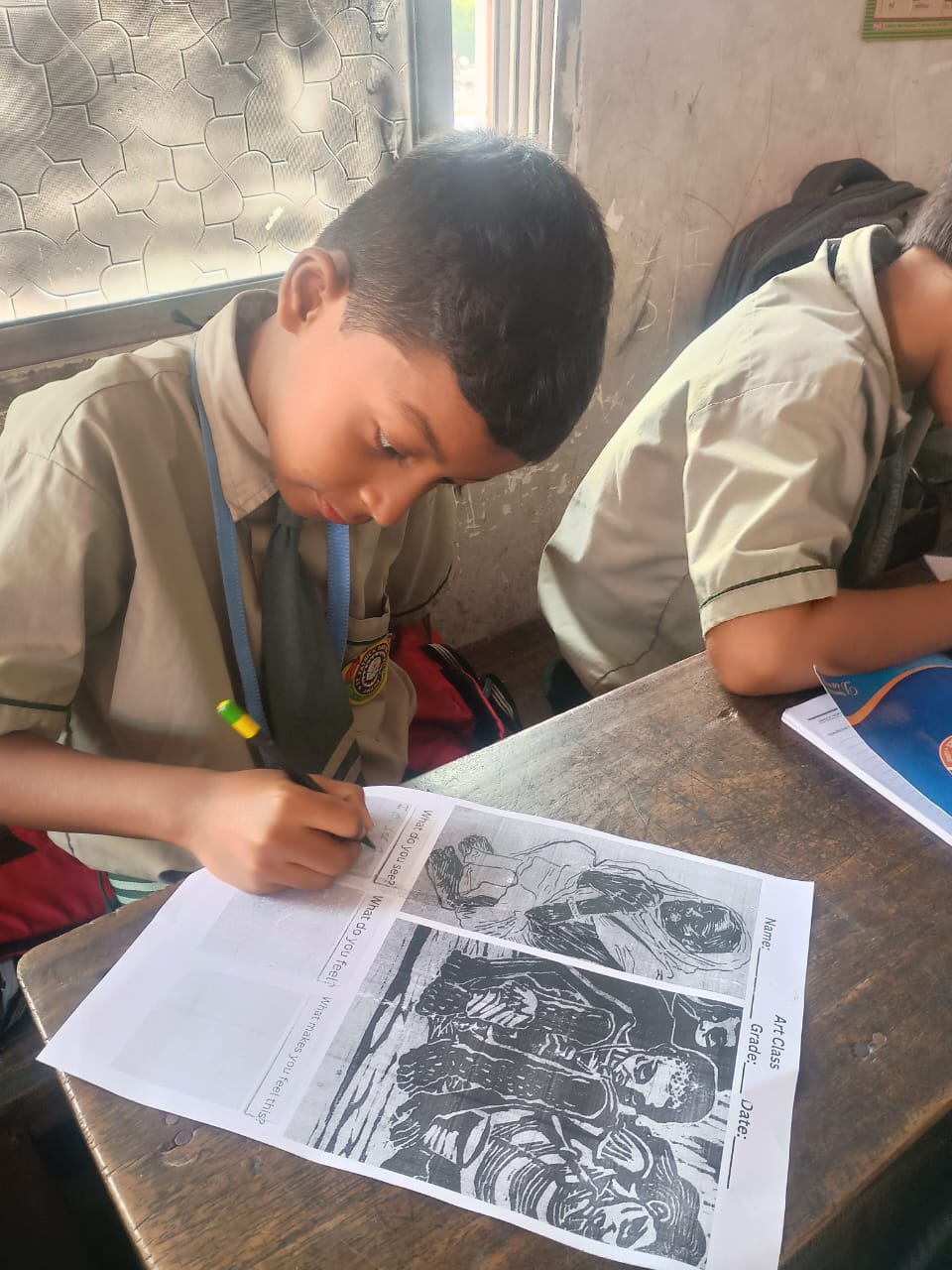 Using the technique of mapping their learning on the blackboard through observations, comparisons, and inferences proved especially effective. The discussion soon expanded into a more personal space, with students sharing their own experiences and stories of discrimination. ‘The students inferred conclusions on the caste system, based on what they observed while comparing the artworks,’ she said, ‘The key understanding of the unfairness of the caste system was reached through a lively debate between them.’
