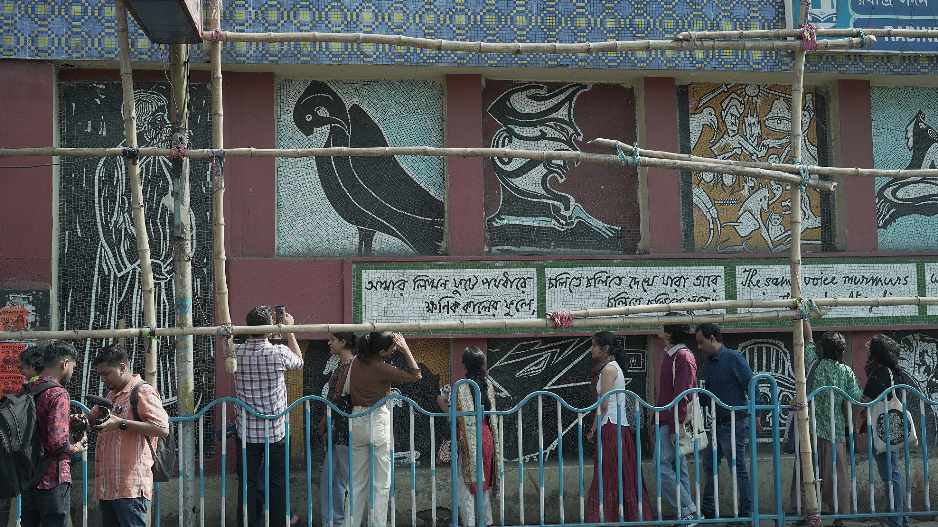 MOSAIC METROPOLISThe next day, we were at the Rabindra Sadan metro station, exploring the commissioning histories, materials and artists who made the murals at various metro stations around the city. Outside the Sadan metro station were images and writings by Tagore which had been transformed into murals for the poet laureate’s 125th birthday. These were executed using a transfer board. Although most Metro murals are unsigned, we traced a few works at Rabindra Sadan, Maidan and Kalighat stations that were designed by teachers and students at Santiniketan’s Kala Bhavana, including Nandadulal Mukherjee and Sukhen Ganguli. At Esplanade metro we saw a mural painted in panels on fibre-glass by Anjolie Ela Menon. We also noticed the mosaic patterns on each station and how it changed at each stop. Designers from the National Institute of Design, Ahmedabad were brought onboard to decide upon the original colour schemes, which were differently coloured to colour-code stations in the minds of the visitors, giving each of them a special identity. |