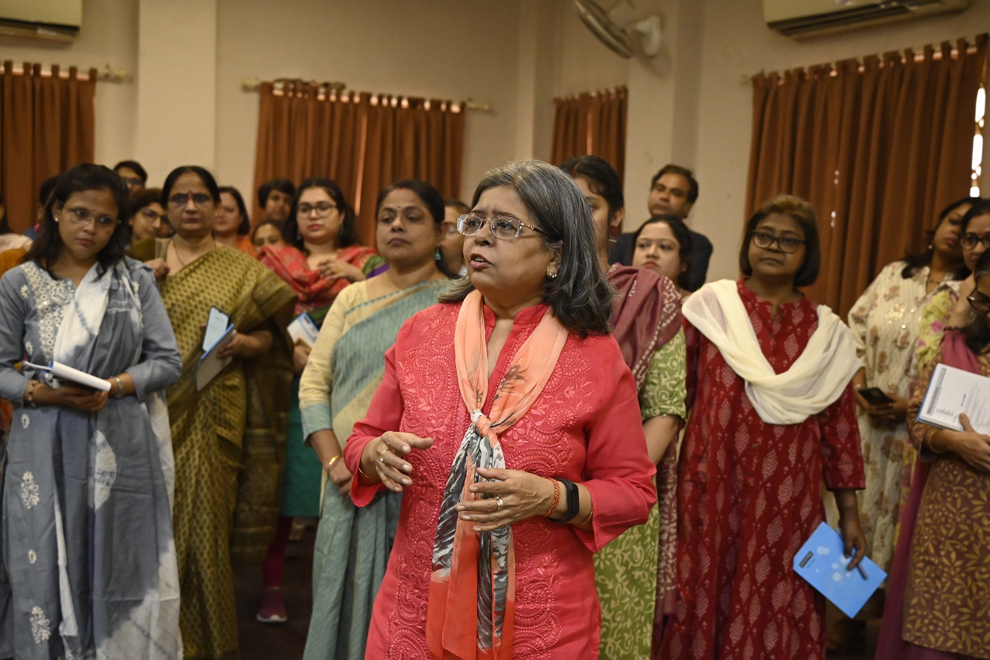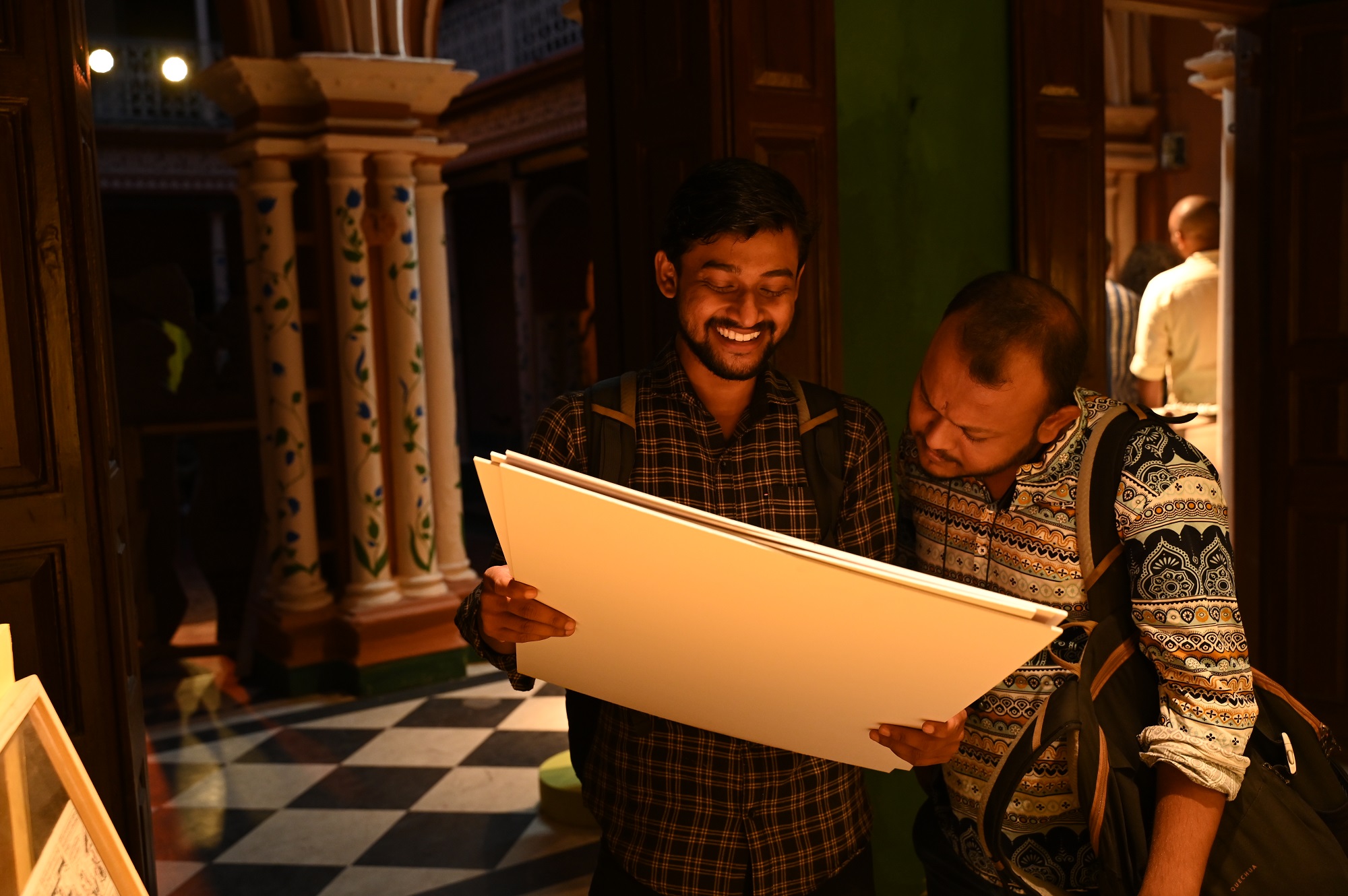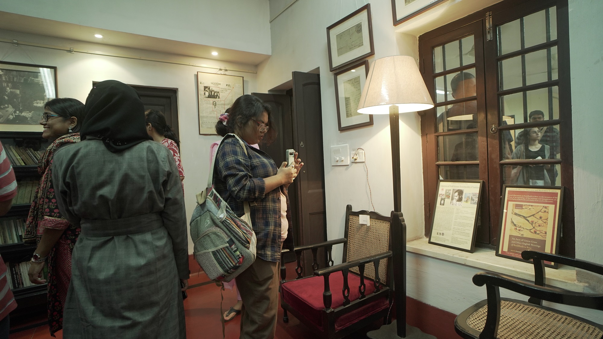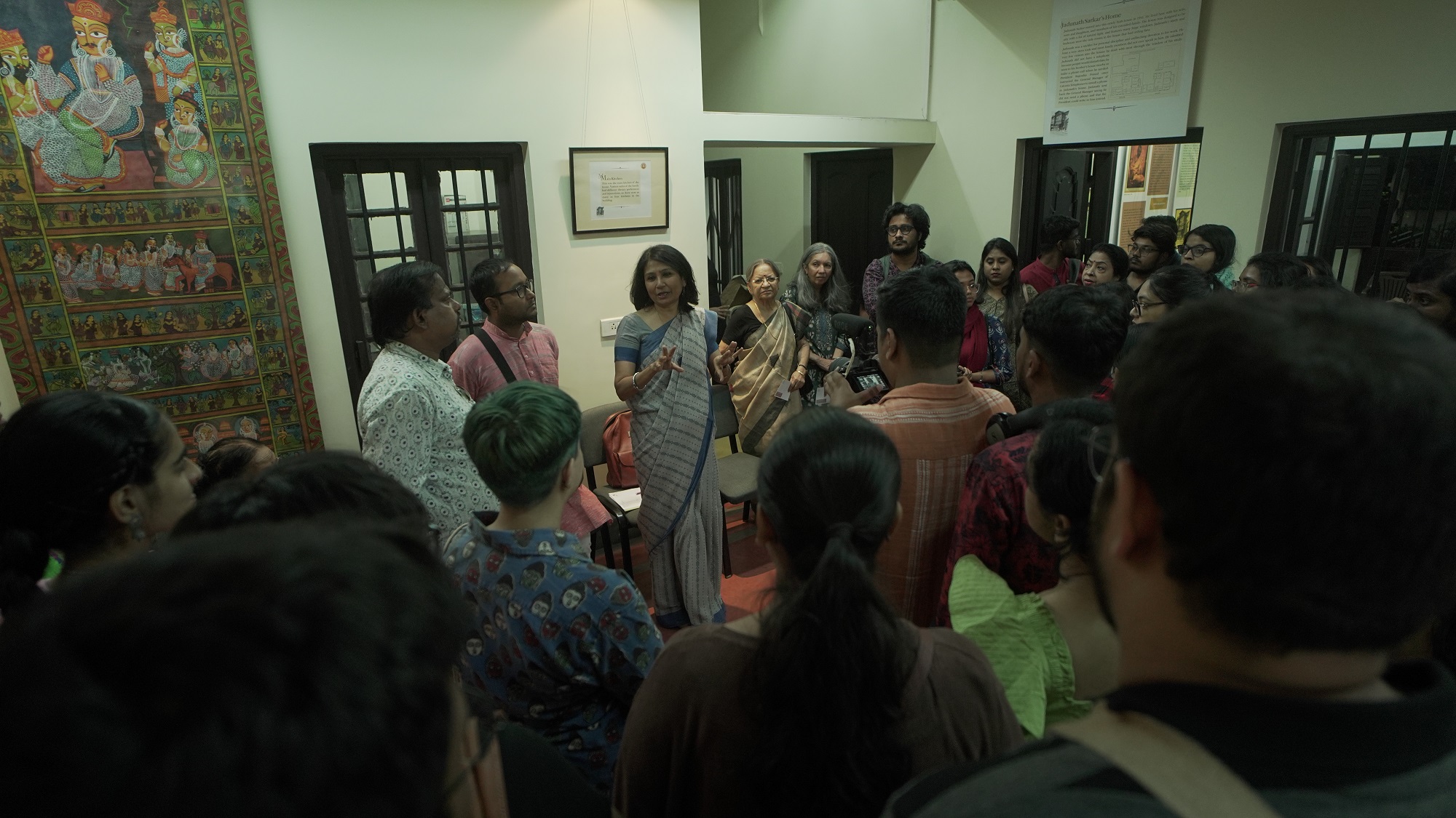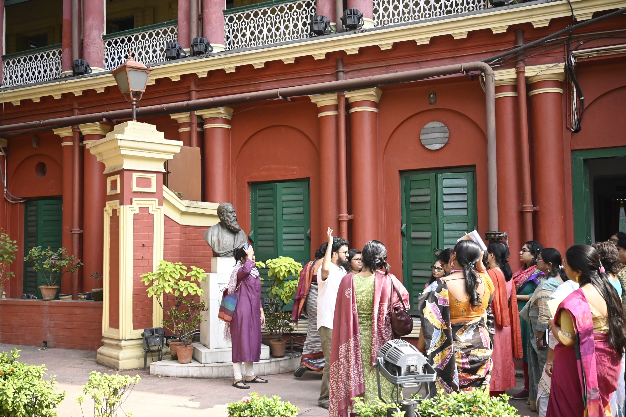 TEACHERS’ WORKSHOPOn the fifth day, we were at Jorasanko Thakur Bari with twenty-six teachers from schools around the city. A trip to the Thakur Bari is a mandatory part of many schools and in the workshop, we looked at various objects of the Tagore household like clothing and art materials for a more nuanced narrative for students, moving beyond the conventional museum narrative. While at the Western Painting Gallery, we observed the portrait paintings of the Tagore family and interpreted what way each of them wanted to appear as, by looking at visual clues in the portraits – Dwarkanath highlighted his business across waters, by having a backdrop of the sea. We looked at the painting materials of Abanindranath when he was learning the wash technique from Japanese artists and pointed out the specific kinds of brushes that he was using at that time. After the tour, teachers pondered on the ways they already use the museum in the curriculum and how a better engagement can be crafted. Moreover, they also considered the ways in which students could arrive at their own interpretations and conclusions about historical objects and narratives. |