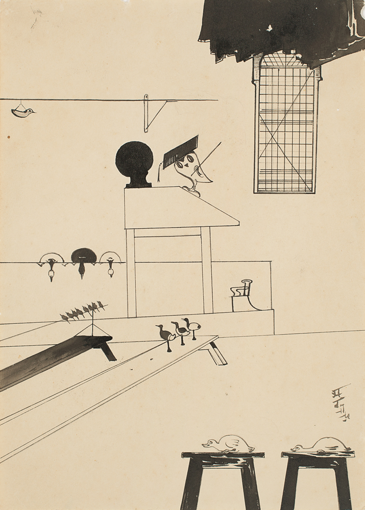 Such artistic exchanges were not uncommon at the time, as demonstrated by the Bauhaus Exhibition in Calcutta in 1922, which featured works by Tagore and Paul Klee—who was another significant figure in the development of Surrealist art (especially drawing), even though he was not officially associated with it. But Tagore’s Paris exhibition marks the first major relay between European and Indian experiments with the unreal, an antecedent to the dream-inflected practices that would surface in post-Independence India.