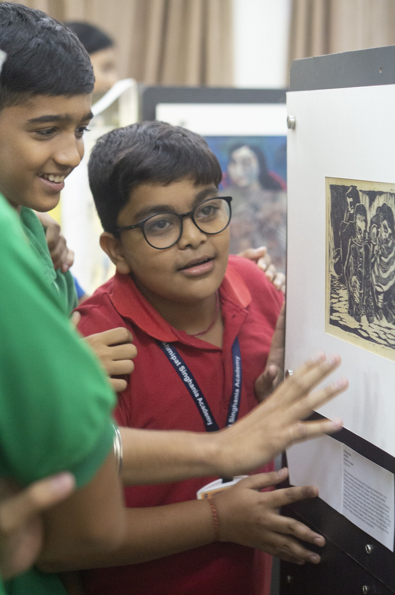 Art Lab, a travelling pop-up exhibition with facsimiles of artworks from the DAG collection has travelled to six schools and and reached over 2000 students since April 2022. Indus Valley World School invited us back a year later to develop an art-based module and participatory exhibition for Independence Day, in line with our methodology for Art Lab. |