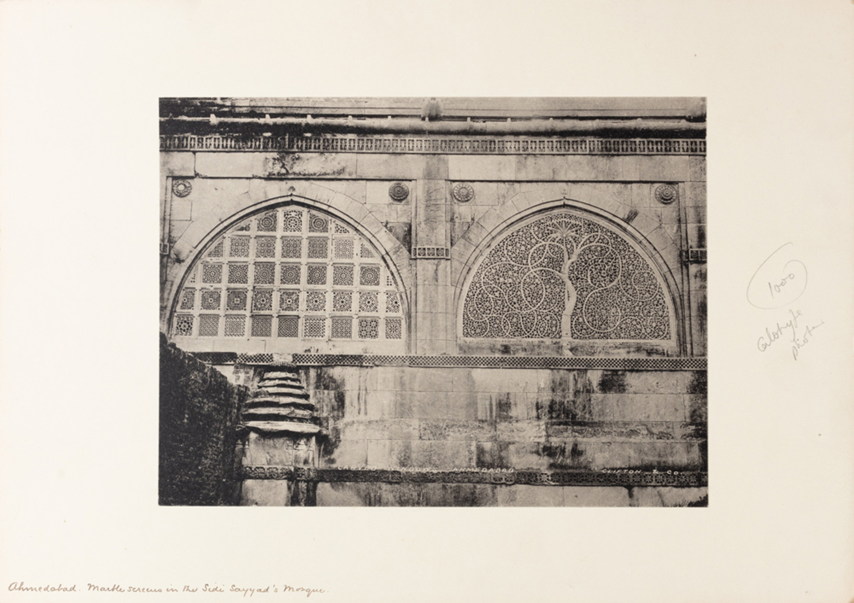 Clifton and Co. (Studio), Carved windows, Ahmedabad, c. 1900s, Collotype pasted on card 7.2 x 9.5 in. Collection: DAG