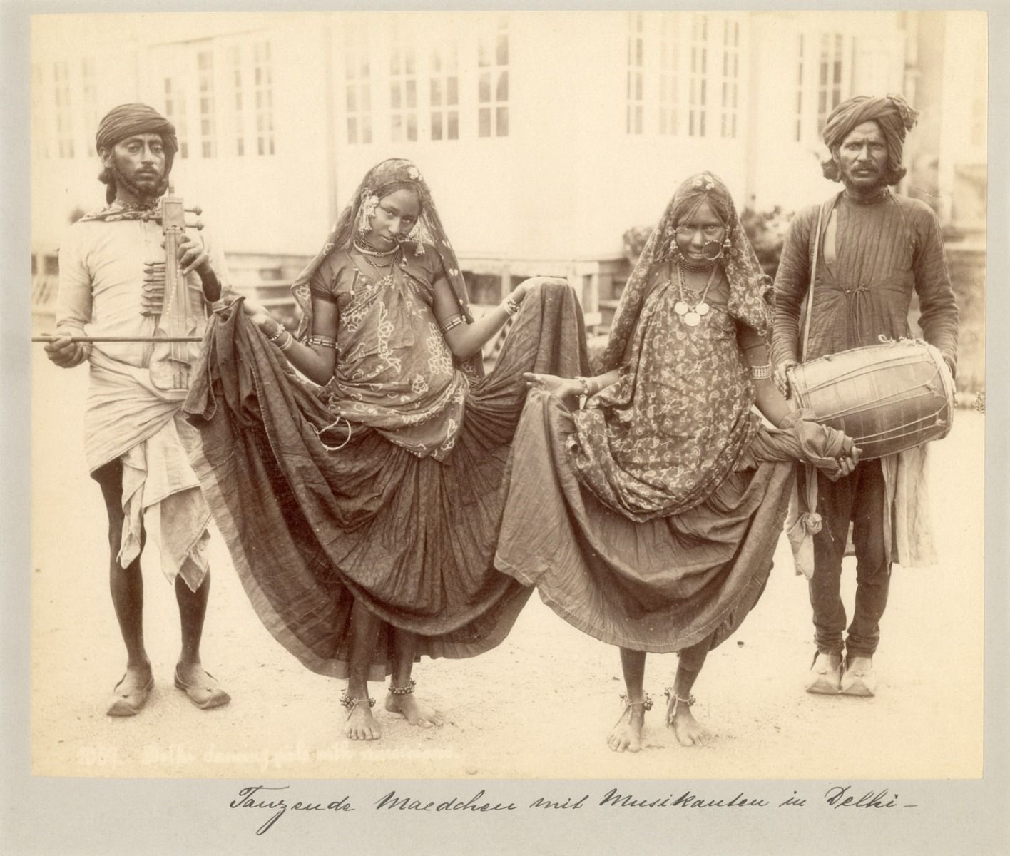 Unidentified Photographer, Delhi Dancing Girls With Musicians, Silver albumen print mounted on card, 7.4 x 9.3 in. Collection: DAG |