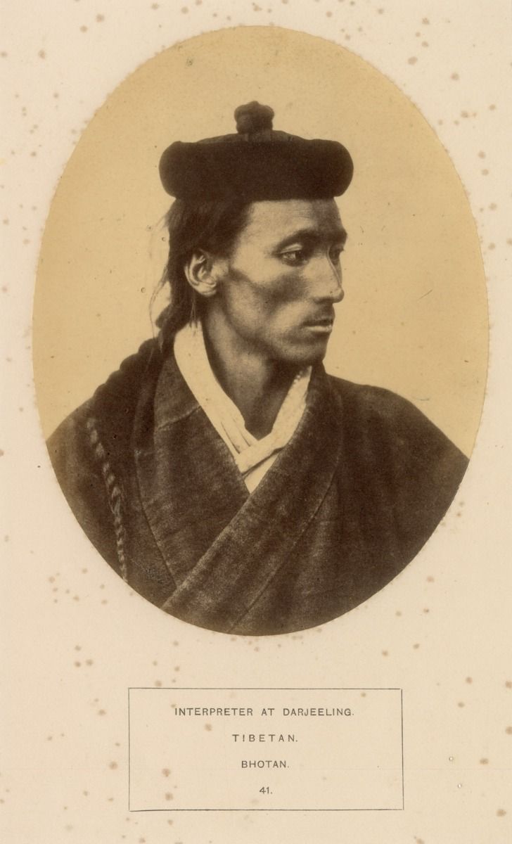 Benjamin Simpson, Interpreter at Darjeeling, Tibetan, Bhotan (Bhutan) (1868, Volume 1), c. 1860 - 62, Silver albumen print mounted on paper with letterpress captions, 6.6 x 5.0 in. Collection: DAG |
