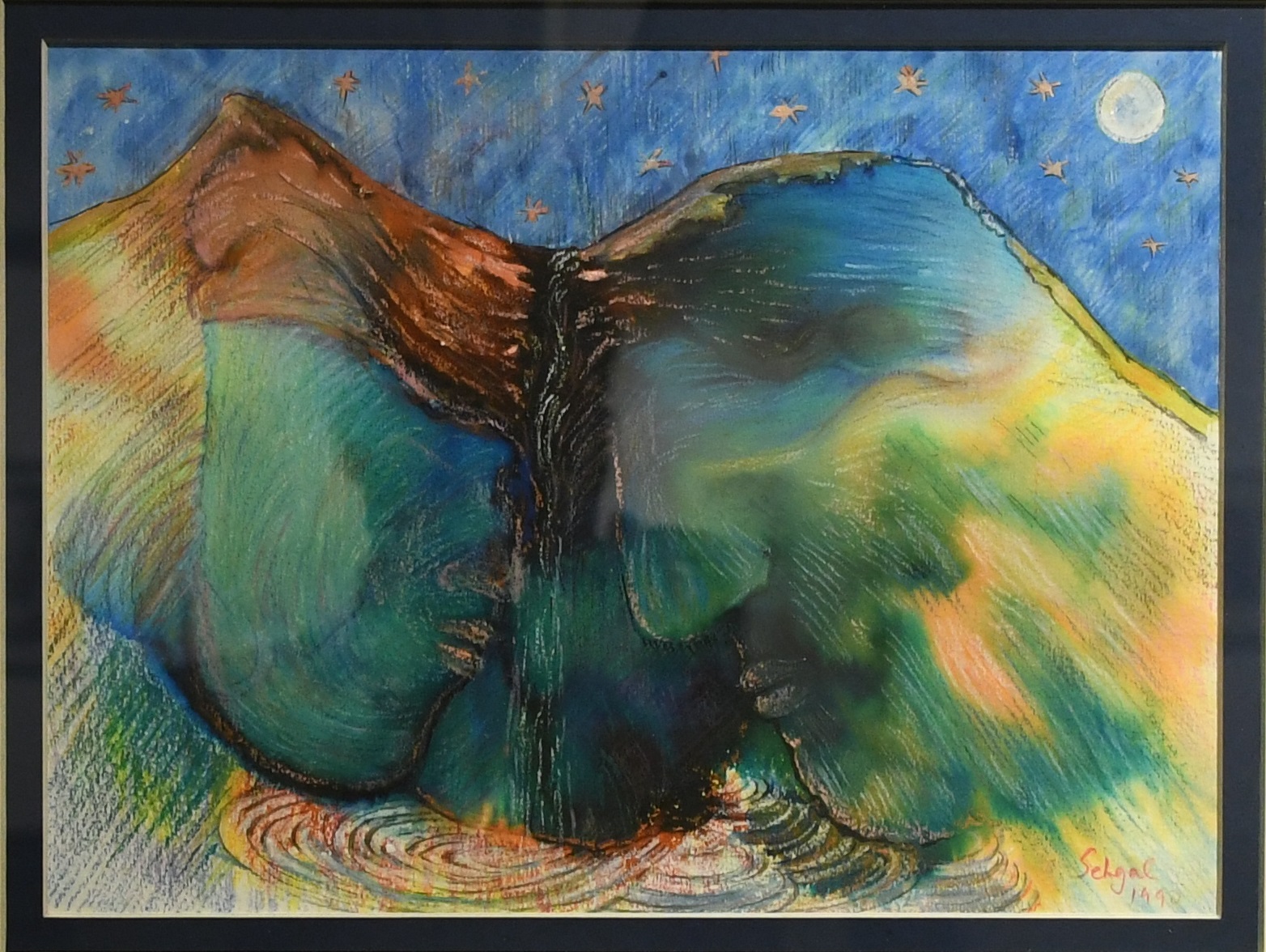 ‘…the form of Ganesha is intrinsically the Elephant, yet endowed with human feelings of strength and power, simplicity, tenderness, playfulness with water, love of arts – dance, flying to celestial resorts, determination, elegance, humility, compassion – the traits universally acclaimed and even garlanded by nature. These are pronounced human attributes, which Ganesha possessed, which I have tried to depict keeping the predominantly pictorial symbol of the Elephant. In fact I mingled the human and elephant forms in these compositions. They breathe the various human attributes conspicuously – a part of Lord Ganesha's character.’ –Amar Nath Sehgal, June 1991 |
