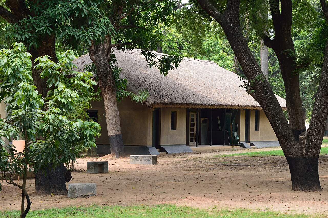 A lane parallel to the Jahar Bedi runs through Salbithi—Tagore’s favourite avenue of Sal (Shorea robusta) trees—and culminates at two of his historically significant residences within the ashram: the single-story, thatched Dehali (1904) and the first two-story house by Tagore, Natun Bari (1906). |