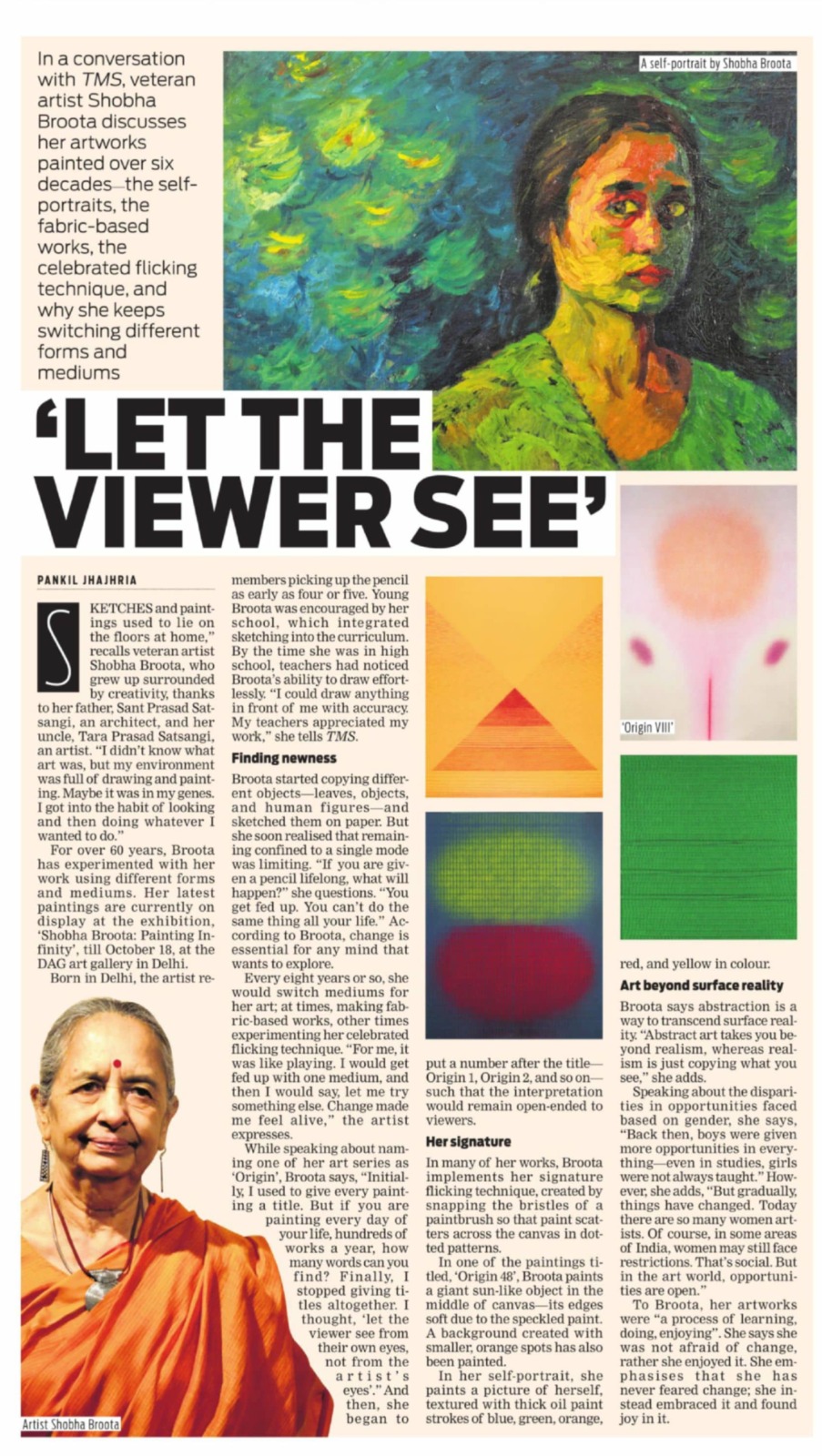 To me art is a medium to discover myself, to find my presence in the cosmic existence…being involved in the pursuit of self-expression is the most beautiful thing to have happened to me. – Shobha Broota |