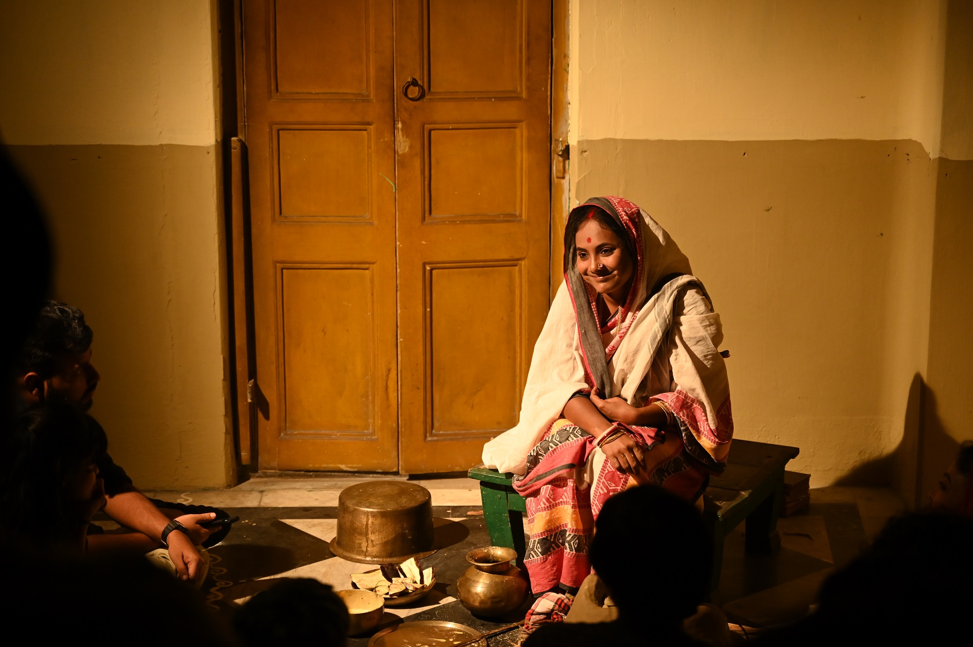 Keyabat MeyeThe queer-feminist theatre troupe 'Samuho' performed the twentieth century morality play ‘Keyabat Meye’ (Wow Woman!) which parodied the figure of the new woman – who was educated and had the freedom to move freely in society. A large section of Bengali society saw these initiatives for women’s education, and the ways in which they could exert their free will, as going against their culture – so the satirical plays were devised to express their displeasure. In the rendition by Samuho, Jnanadnandini Debi devised the Brahmika style of draping a sari, Nati Binodini rued her theatrical history as written by men and Indira Debi and Pramatha Choudhuri exchanged letters across seas. The performers used the entire space of North Kolkata’s Barrister Babu’s house, as it is now known, to present various sections of the play, creating spaces of intimacy and engagement. |