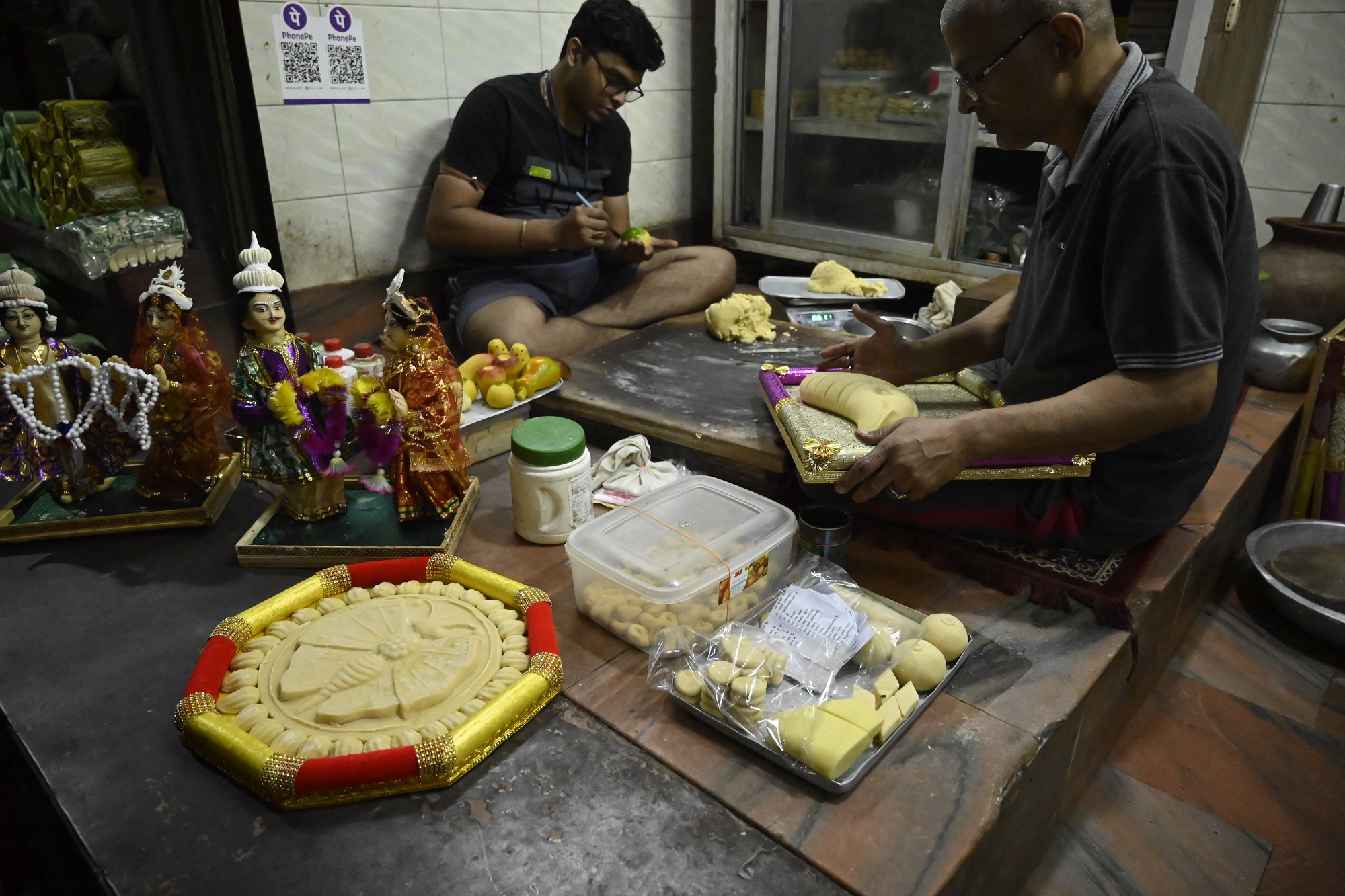 ‘What makes Bengali sweets different from those of the rest of the country is that chhana is used as the main ingredient in them, while most of the rest of India relies on khoya, a milk solid prepared by boiling full-cream milk till it condenses to a thick paste, which is then cooled down to a hard mass. Bengali sweets are more perishable because chhana is soft and full of moisture; the sugar in them actually plays the role of a preservative.’ |