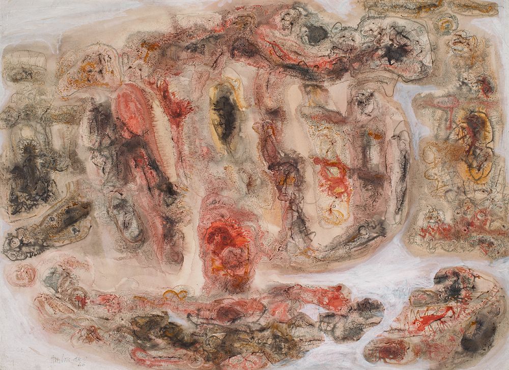 In Ambadas’s works, one of India’s most prominent abstractionists in post-independent Indian art, the application of colour and the presence of pigment played a significant role. In his works from the late Sixties, such as in this, one sees an infusion of pulsating energy. While devoid of forms, aim and end, his works exhibit a constant state of flux with upward or spiralling movement, a characteristic feature of his works. The fascination of Ambadas’s works lies in the fact that it always challenges and engages the viewer; it is about nothing and yet about everything. The artist’s palette from the mid-1960s consisted of earthy tones, dominated by browns and reds, and it is a palette he continued with even in his early years in Norway in the 1970s.